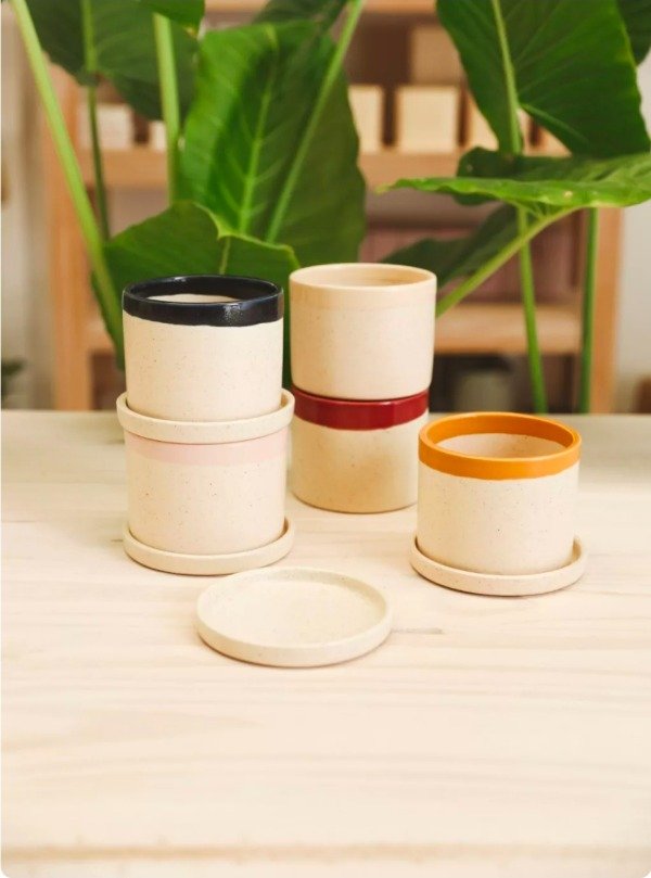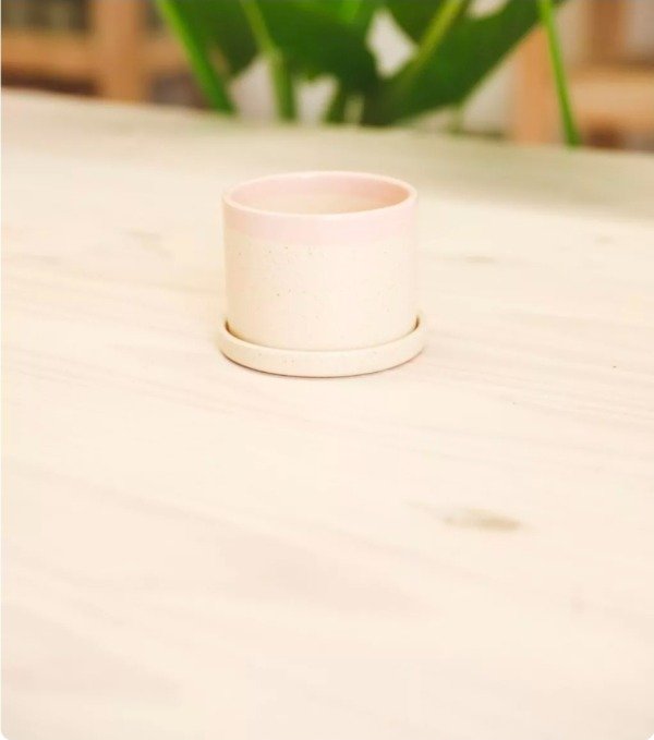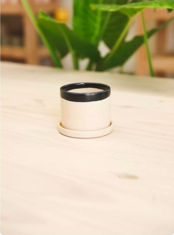 Maceta cilíndrica de cerámica esmaltada a mano.