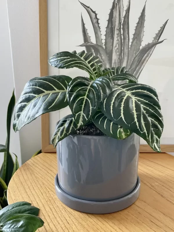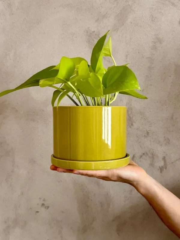 Incluye plato del mismo color. Recomendamos no dejar agua estancada en el mismo para evitar que se filtre humedad.
