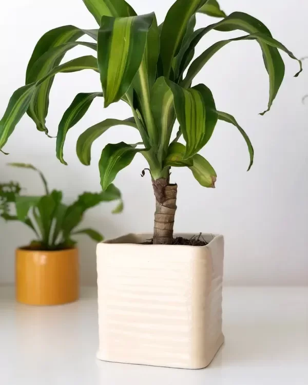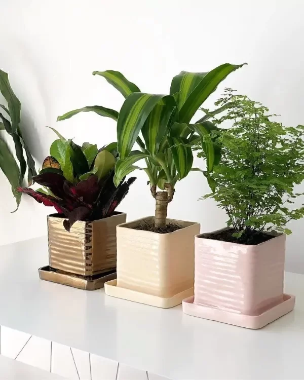 Maceta cuadrada de cerámica esmaltada a mano.