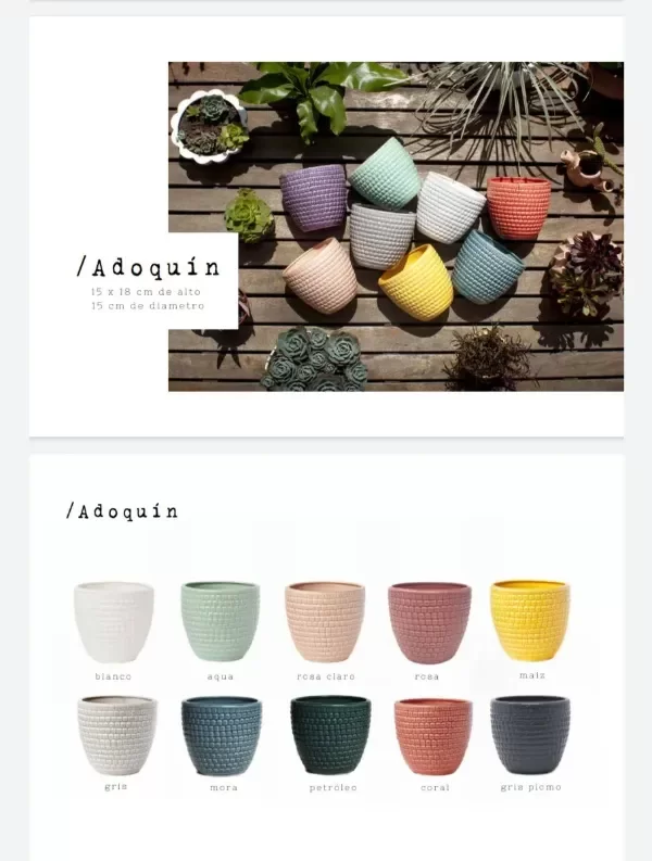 La maceta modelo Adoquín es una opción de cerámica para decoración, con forma redonda, un diámetro de boca de 15 cm, altura de 18 cm.
