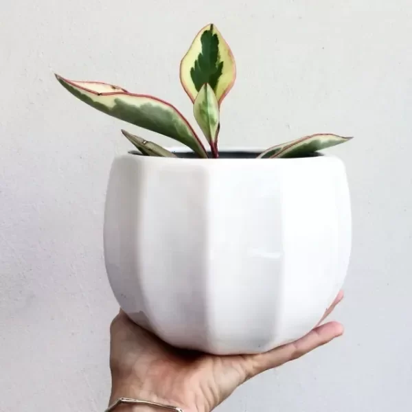 La maceta Flora fue diseñada pensando en la naturaleza. Tiene una delicada línea geométrica y facetada, marcando una perfecta y armoniosa simetría.