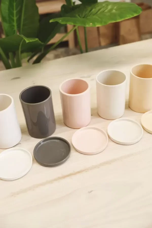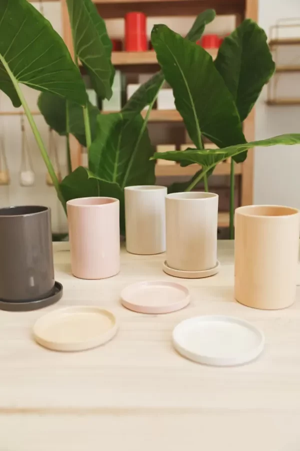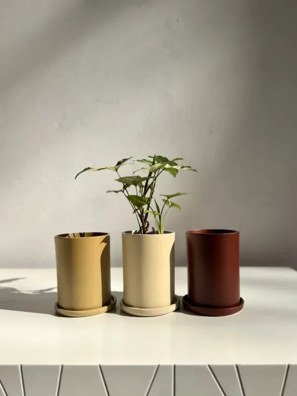 Maceta tubular de cerámica esmaltada a mano.